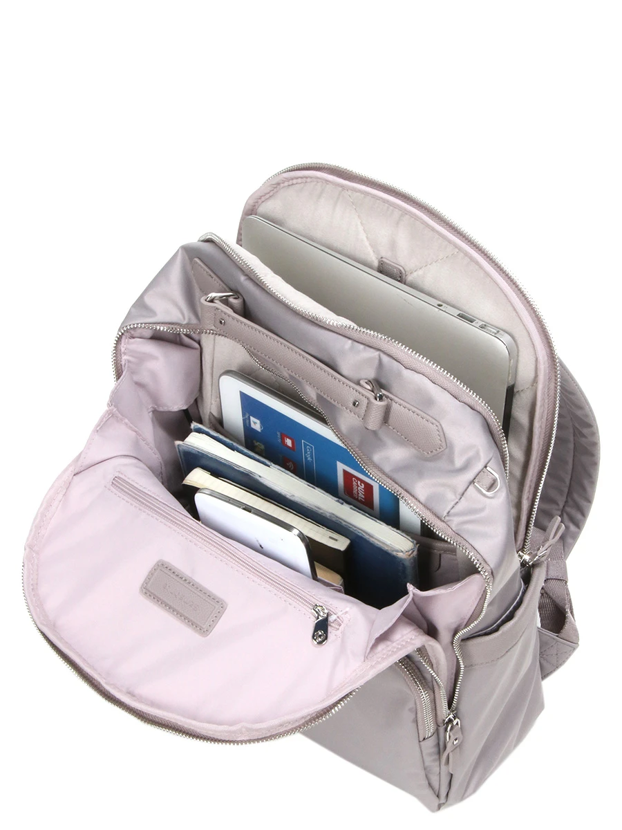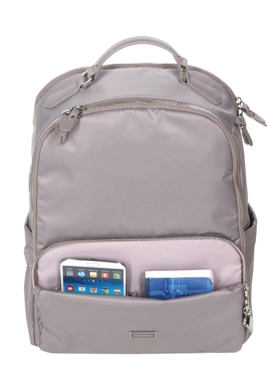 Le sac Ă dos ordinateur Samsonite Karissa Biz 2.0 – 14.1 pouces multiplie les dispositifs astucieux pour simplifier le quotidien des femmes actives ! Ergonomique et bien agencĂ©, il promet des journĂ©es placĂ©es sous le signe du confort et de l’organisation. Les nomades connectĂ©es apprĂ©cieront particulièrement la prĂ©sence d’emplacement renforcĂ© pour ordinateur et tablette. Pour rester branchĂ© Ă l’actualitĂ© et aux mails tout au long du trajet, on peut compter sur son port USB permettant une charge rapide du tĂ©lĂ©phone (en ayant au prĂ©alable placĂ© Ă l’intĂ©rieur une power bank non fournie). Son revĂŞtement satinĂ© en polyester recyclĂ©, ses dĂ©tails mĂ©talliques brillants et ses belles finitions en simili cuir participent Ă son look rĂ©solument Ă©lĂ©gant et fĂ©minin.