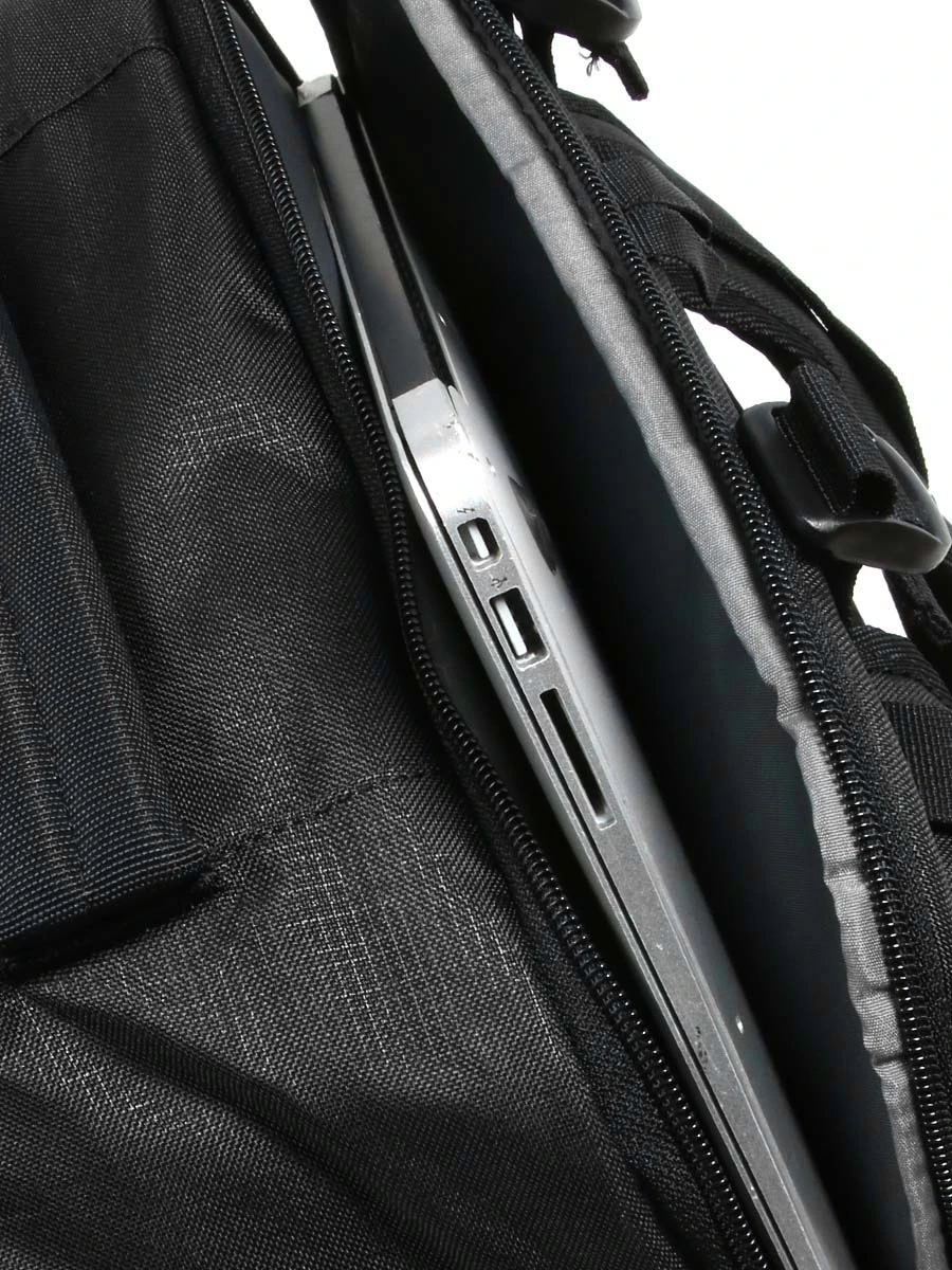 Les bretelles et la sangle pectorale du sac Ă dos ordinateur Samsonite Roader Travel M sont en effet escamotables. Comme le dos, elles sont Ă©galement matelassĂ©es et tapissĂ©es de mesh. Les trois poignĂ©es de portage sont rembourrĂ©es pour une prise en main confortable. Un passant pour trolley permet de l’accrocher Ă une valise Ă roulettes pour des dĂ©placements plus longs. Pour sĂ©curiser le contenu, les languettes des zips sont perforĂ©es, permettant ainsi d’y accrocher un cadenas (non fourni). Pour prĂ©server les affaires contre les chocs, le fond est renforcĂ©.