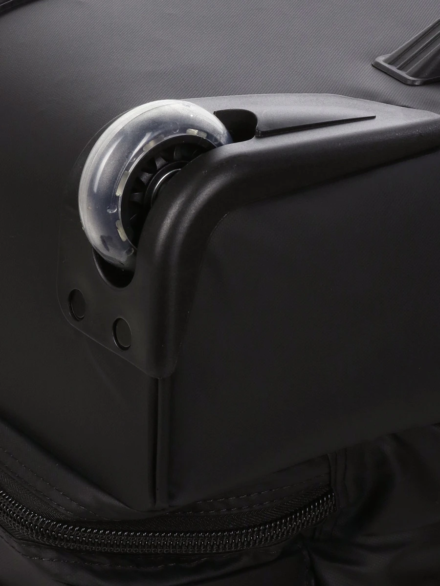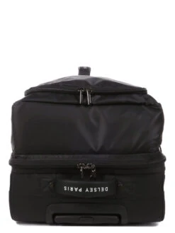 Le sac à roulettes Delsey Raspail se tracte aisĂ©ment grâce Ă ses deux roues et sa poignĂ©e rĂ©tractable Ă double tube qui se règle sur plusieurs positions. Des renforts de protection Ă©vitent d’abĂ®mer le revĂŞtement au cours du roulement. Il dispose Ă©galement d’une poignĂ©e haute et d’une poignĂ©e latĂ©rale pour le portage Ă la main. RenforcĂ©es de mousse et pourvues de tissu respirant, elles assurent une prise agrĂ©able, par exemple pour franchir les trottoirs et gravir des escaliers. Pour empĂŞcher les vols, le sac est dotĂ© d’une fermeture Ă Zip Securitech et vendu avec un cadenas TSA Ă code qui permet de le sĂ©curiser. Enfin, un flashcode imprimĂ© Ă l’intĂ©rieur de la petite poche supĂ©rieure permet d’enregistrer la garantie sur le site de la marque.