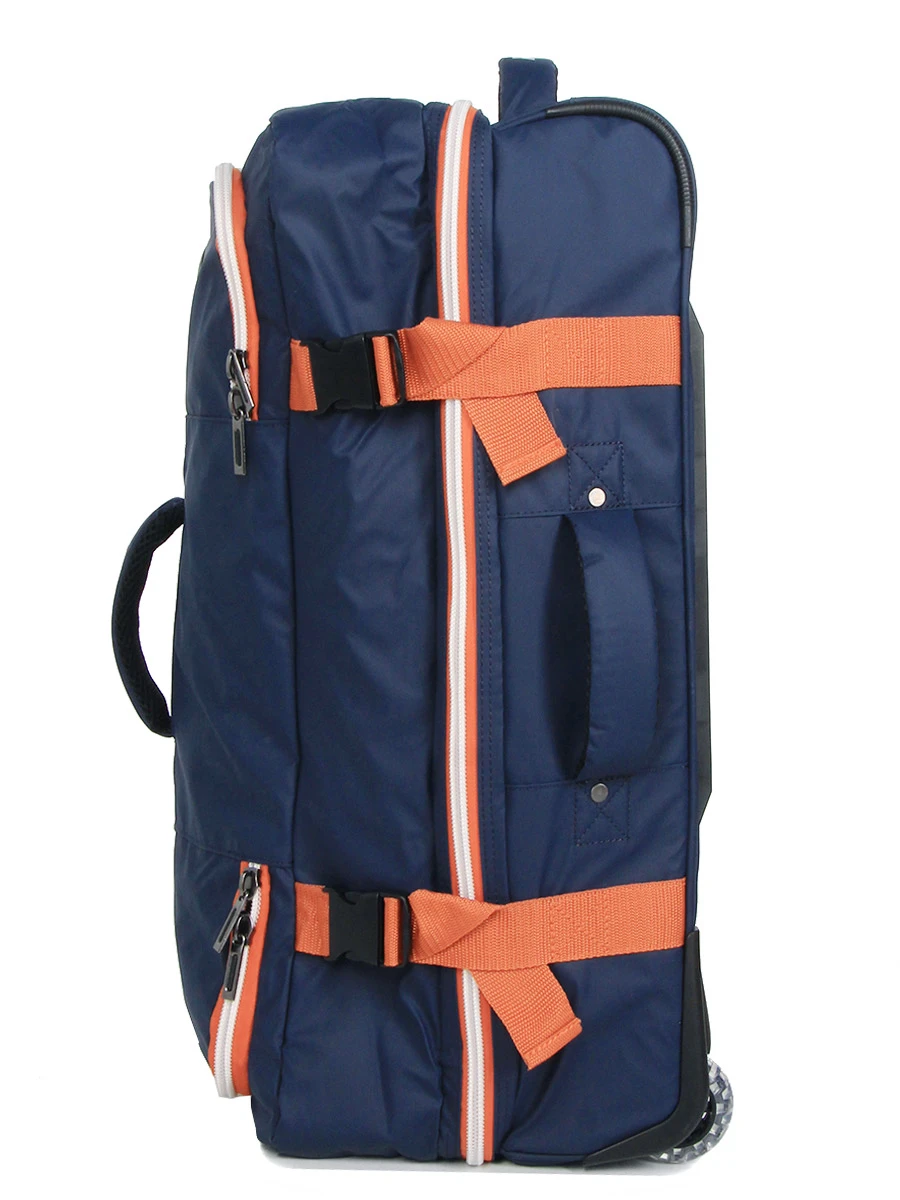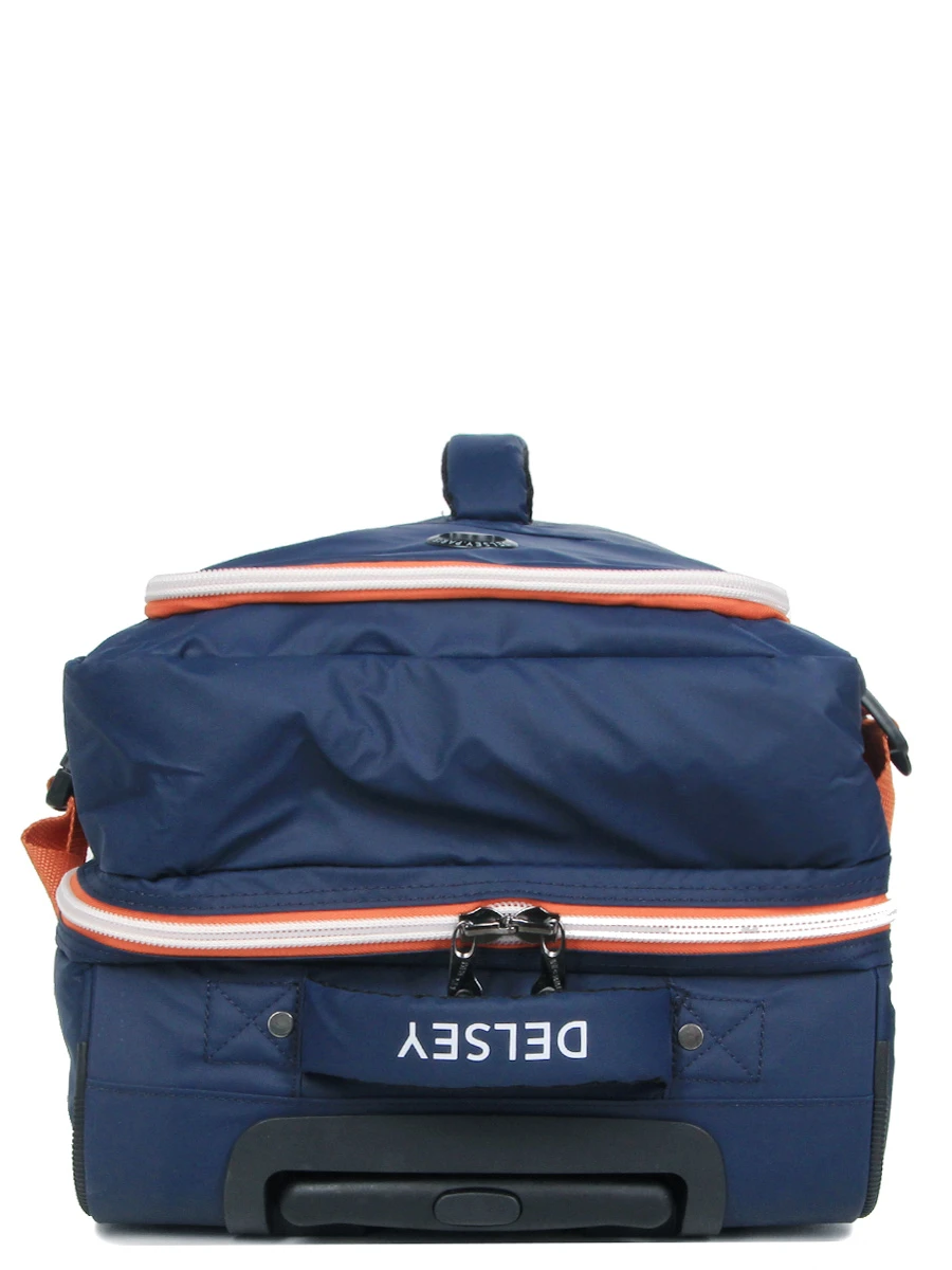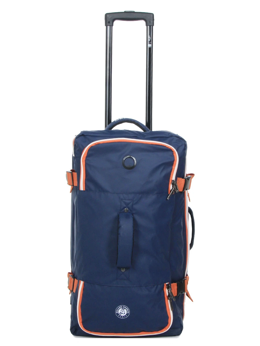 Le sac trolley Delsey x Roland Garros Raspail possède 2 compartiments spacieux entièrement doublĂ©s pouvant accueillir bon nombre de tenues de rechange, d’affaires de toilette, de paires de chaussures supplĂ©mentaires… Pour Ă©viter les faux plis, les vĂŞtements peuvent ĂŞtre maintenus efficacement en place en utilisant ses 2 plateaux sĂ©parateur souples zippĂ©s et ses 4 sangles rĂ©glables. A l’avant, 2 poches Ă fermeture Ă glissière permettent de laisser accessibles titres de transport et autres essentiels au bon dĂ©roulement du voyage.