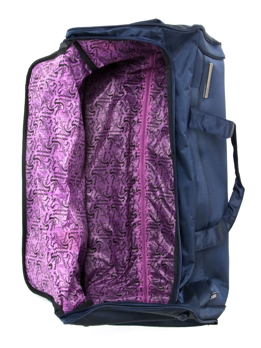Le sac 2 roues Horizon New Mexico possède un grand compartiment entièrement doublé pour concerver son contenu bien au sec. Son ouverture zippée en U facilite son chargement. Les piles de linge bien pliés peuvent ainsi y être déposées sans difficulté. Certains accessoires de mode, les chaussettes ou les affaires de toilette peuvent être placés à part dans sa grande poche frontale à fermeture éclair.