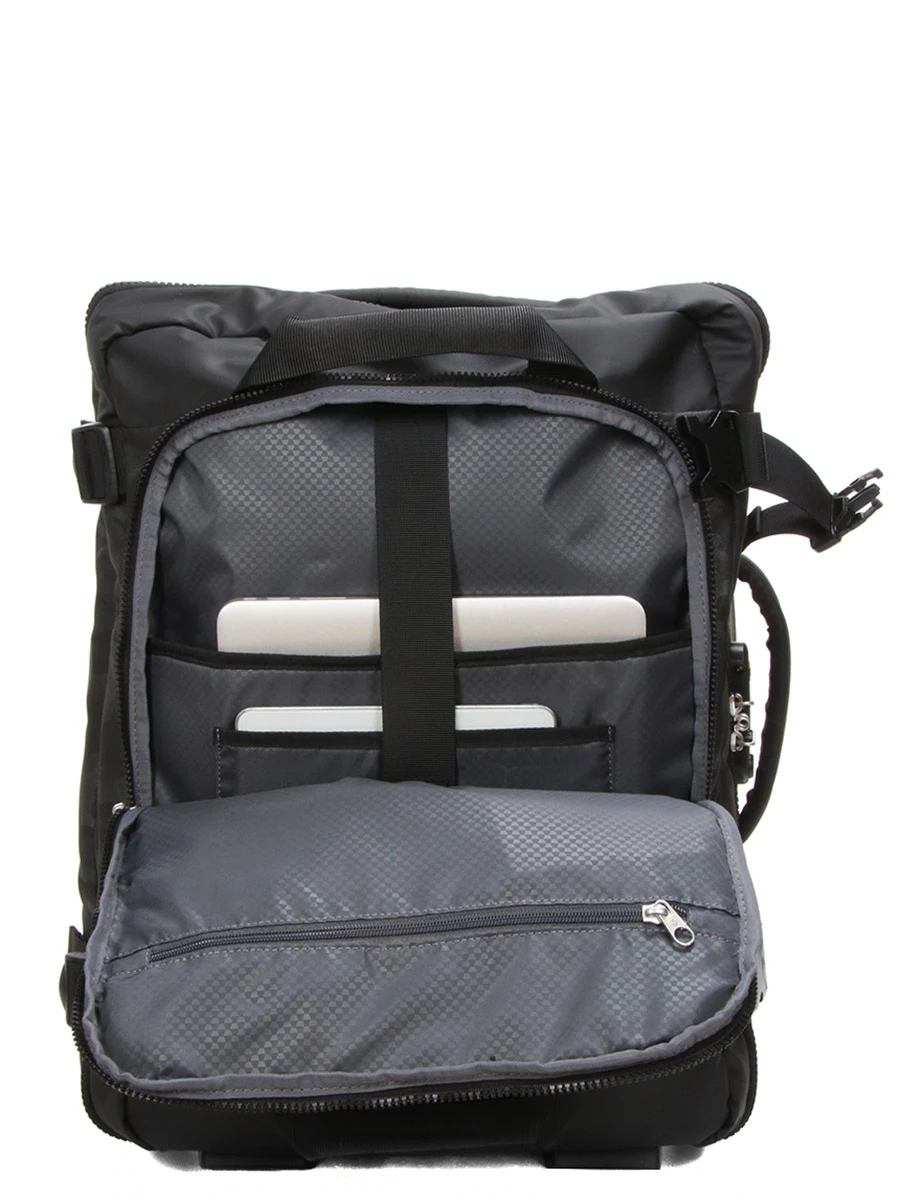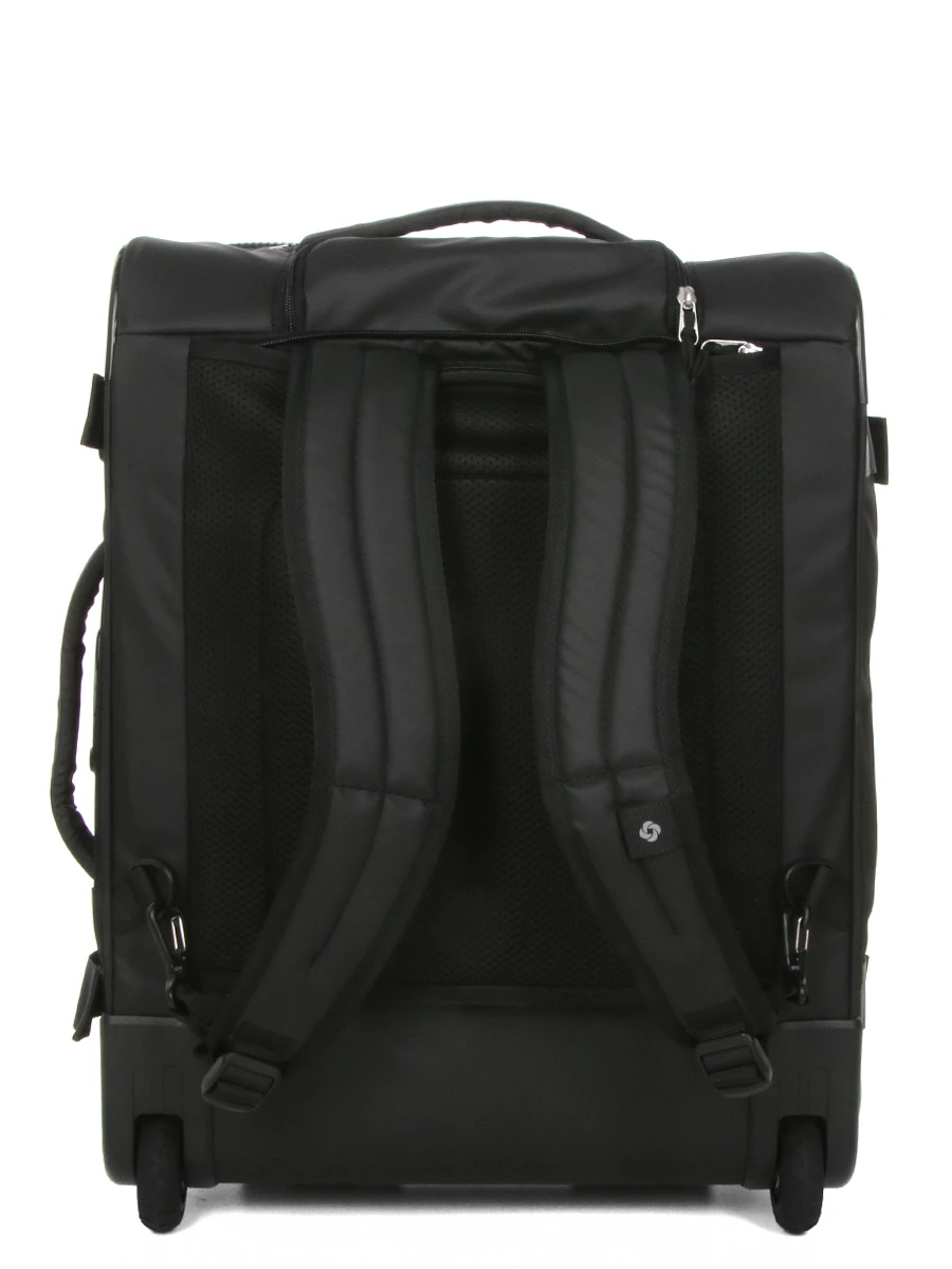 Le sac de voyage à roulettes sac à dos Samsonite Midtown 55 cm – Poche Frontale plaira aux nomades qui souhaitent trouver un allié pour tous leurs périples aussi bien dans les longs couloirs d’un aéroport qu’en transit pour 2 h dans une ville inconnue. Pour ce faire, il peut tout aussi confortablement être tracté que porté dans le dos ! Il est en plus agencé de manière astucieuse pour transporter avec soin du linge et du matériel informatique. Sa fabrication qualitative et éco-responsable mêle polyester recyclé et polyester enduit pour allier robustesse, légèreté et respect de l’environnement – encore un bon point pour ce bagage très versatile !