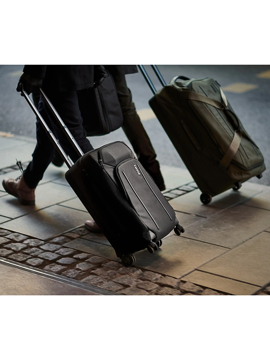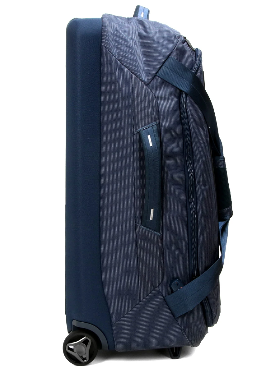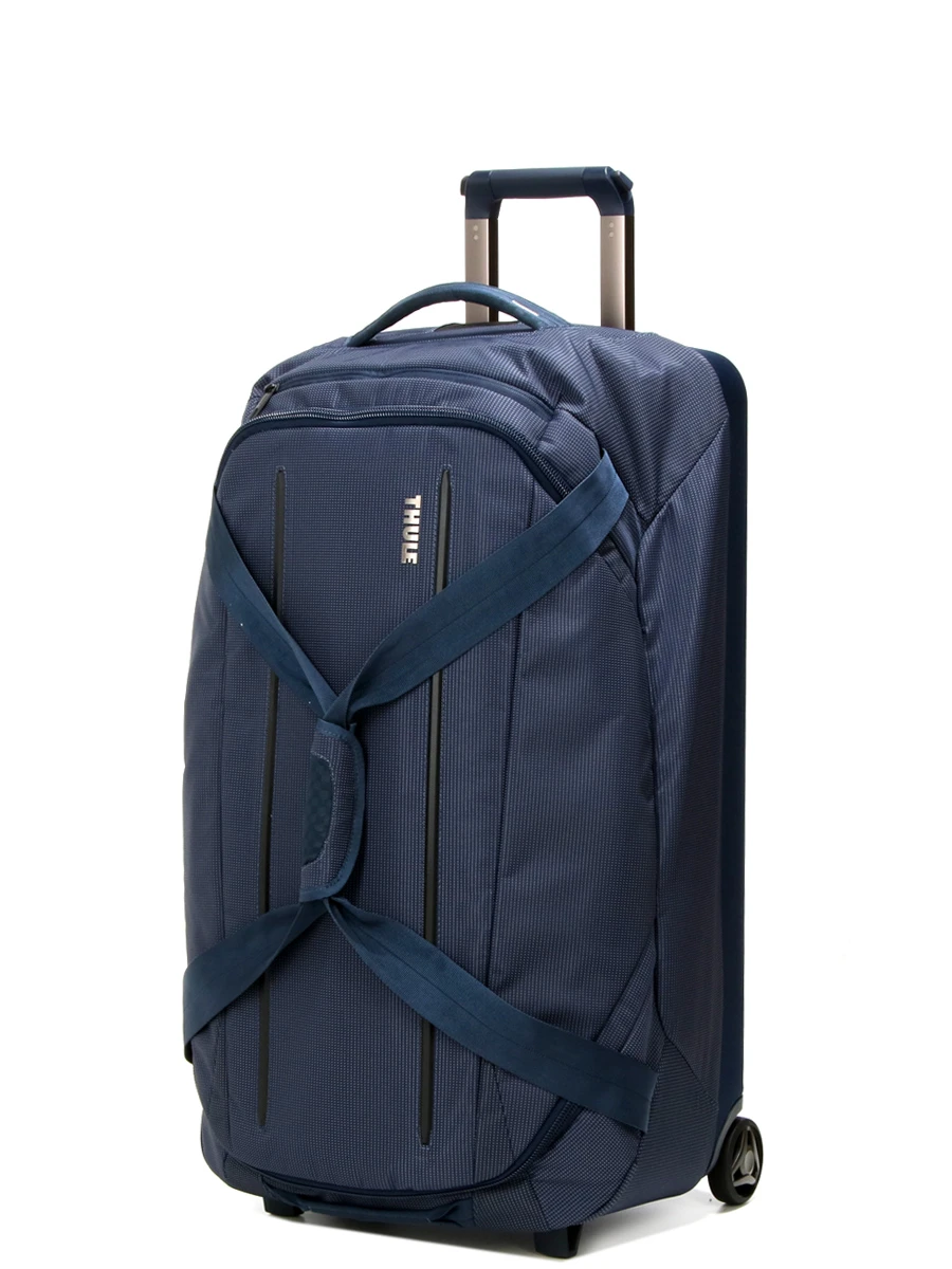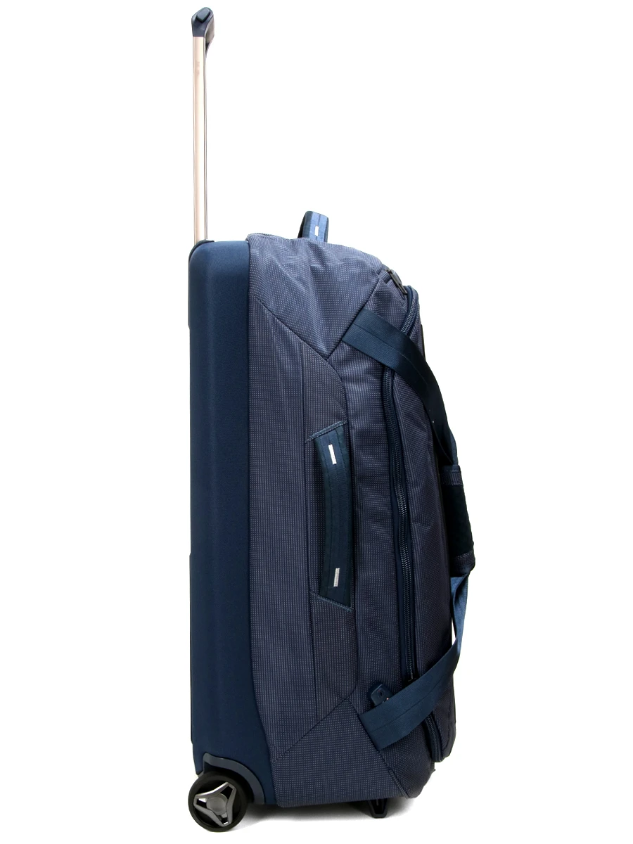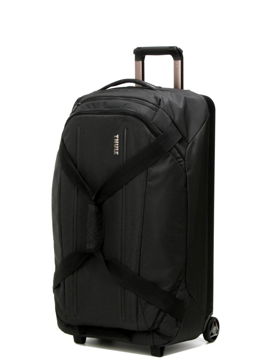Le sac Ă roulettes Thule Crossover 2 se tracte agrĂ©ablement en le saisissant par sa poignĂ©e tĂ©lescopique Ă double canne brevetĂ© par la marque. Pour utiliser cette dernière, il est nĂ©cessaire d’appuyer simultanĂ©ment sur ses 2 boutons poussoir latĂ©raux. Ainsi, aucun risque que la poignĂ©e se range dans son logement suite Ă une erreur de manipulation (en appuyant un sac d’appoint dessus, par exemple). Ses 2 larges roulettes permettent une glisse sans accroc y compris sur les sols irrĂ©guliers. Pour le porter Ă la main, il est pourvu de 2 poignĂ©es rembourrĂ©es sur le dessus et le cĂ´tĂ©. Ses 2 grandes anses avec patte de maintien Ă attache velcro permettent quant Ă elles de le dĂ©placer de manière commode sur un porte-bagages ou dans le coffre d’un vĂ©hicule.