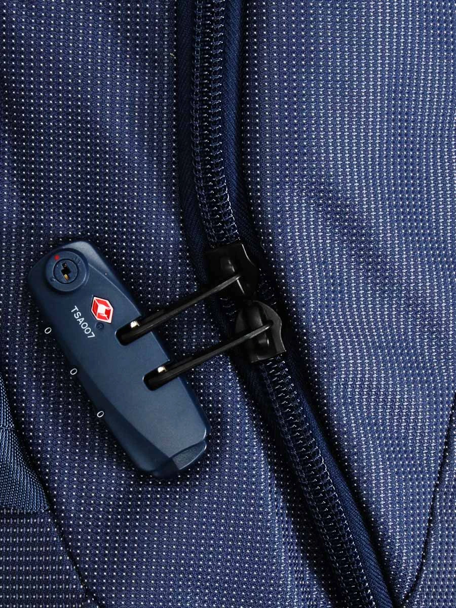 Bien pensĂ© dans les moindre dĂ©tails, il est aussi Ă©quipĂ© d’une serrure TSA Ă code pour sĂ©curiser aisĂ©ment son contenu. Par ailleurs, des renforts de protection et des patins de stabilisation lui offrent une meilleure endurance face aux chocs et aux abrasions.