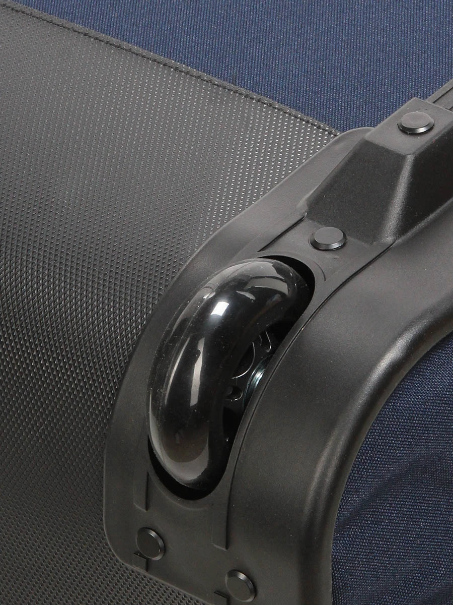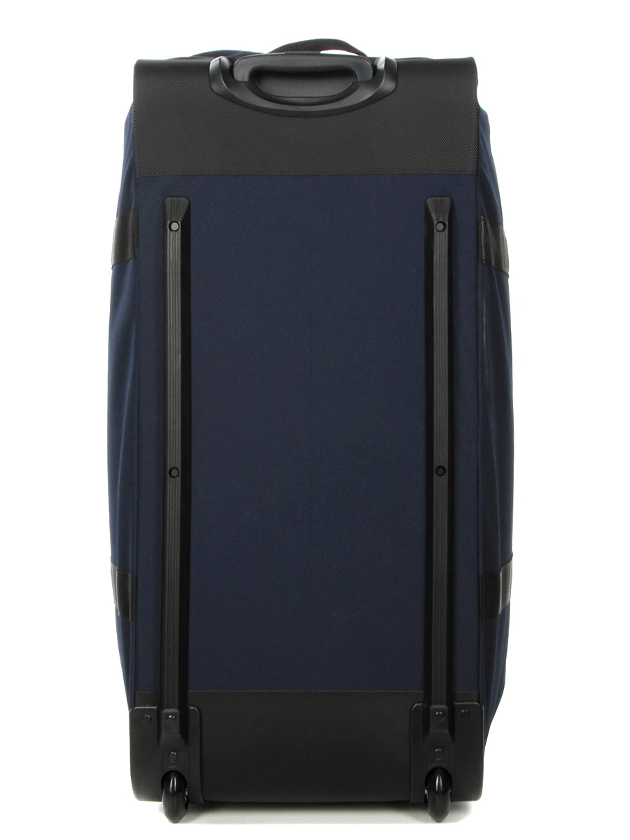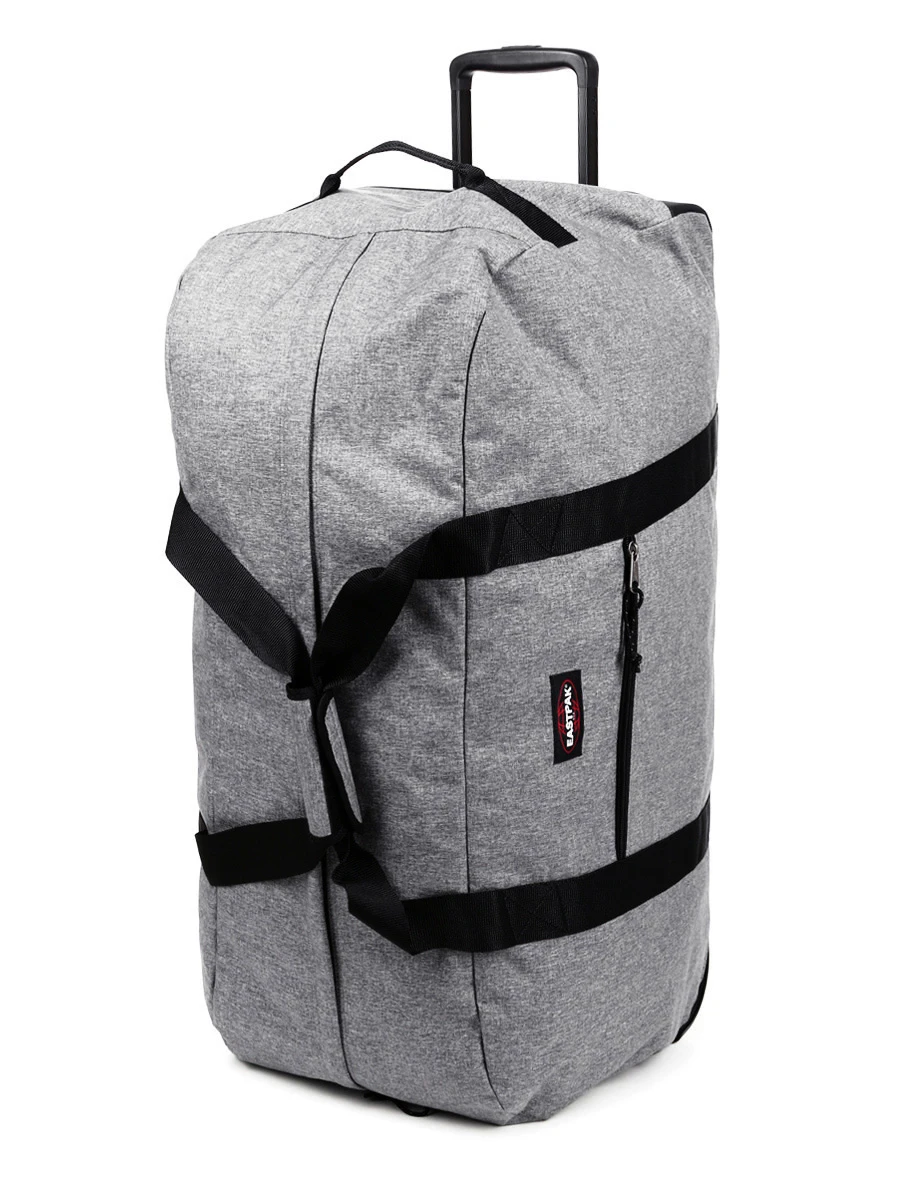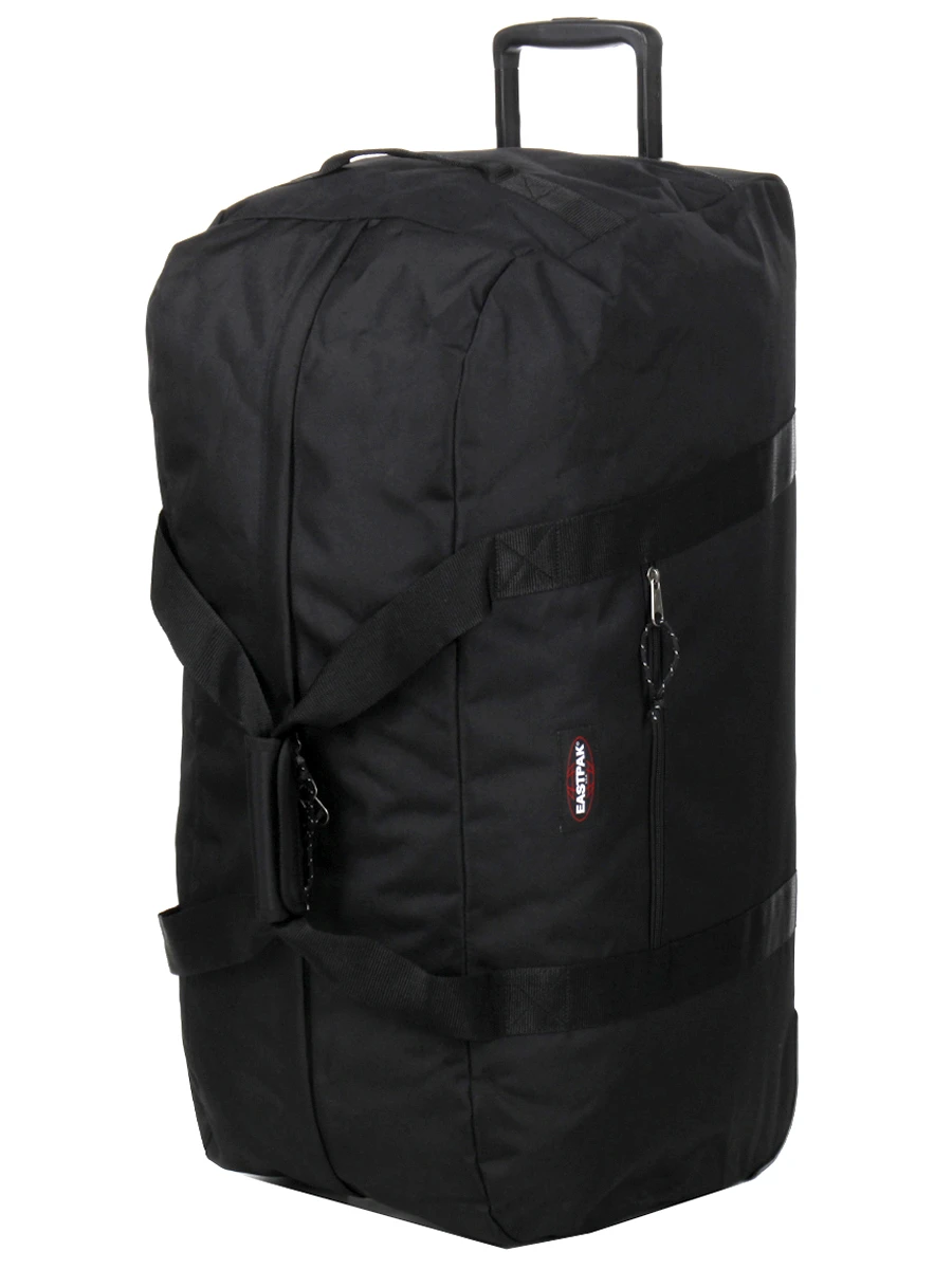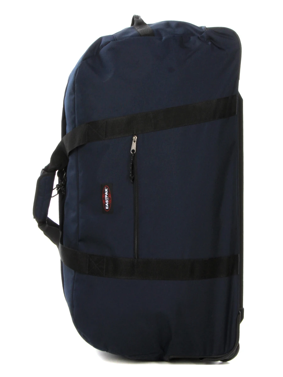 Le sac de voyage Eastpak Container + se dĂ©place de manière agrĂ©able en utilisant son trolley Ă double canne et en le faisant glisser sur ses 2 roulettes. Sur le dessus, 2 anses avec patte de maintien rembourrĂ©e Ă attache velcro permettent de le porter Ă la main si on le souhaite. Pour le dĂ©placer sur un porte-bagages ou le sortir du coffre d’un vĂ©hicule, il est bon de noter qu’il dispose en sus d’une poignĂ©e latĂ©rale. Pour sĂ©curiser sa fermeture zippĂ©e, il est possible de glisser un petit cadenas dans ses curseurs percĂ©s si on le souhaite. Enfin, pour garder vos affaires bien au sec – mĂŞme en cas d’intempĂ©ries – son revĂŞtement est enduit d’une finition impermĂ©able sur sa face interne.