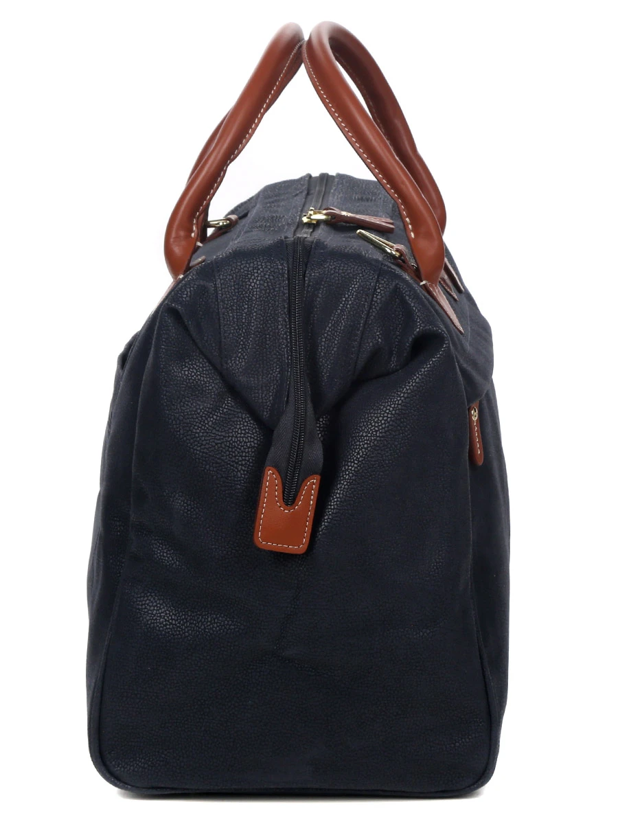 Le sac de voyage Jump Squarmouth Uppsala 42 cm permet aux nomades Ă©lĂ©gants de transporter avec chic toutes les affaires nĂ©cessaires pour un long week-end. Sa toile enduite Ă finition façon cuir grainĂ© et ses dĂ©tails en cuir de vachette pleine fleur ainsi que son ouverture façon sac diligence participent Ă son allure raffinĂ©e, classique et intemporelle. Sa conception soignĂ©e et robuste est plus garantie 5 ans par la marque. Son style et sa soliditĂ© ne sont pas ses seuls atouts puisqu’il dispose Ă©galement d’un espace de rangement bien pensĂ© et de diffĂ©rentes options de portage confortables. Son gabarit rĂ©pond aux normes drastiques de nombreuses compagnies aĂ©riennes ce qui permet de le garder toujours avec soi y compris en cabine.
