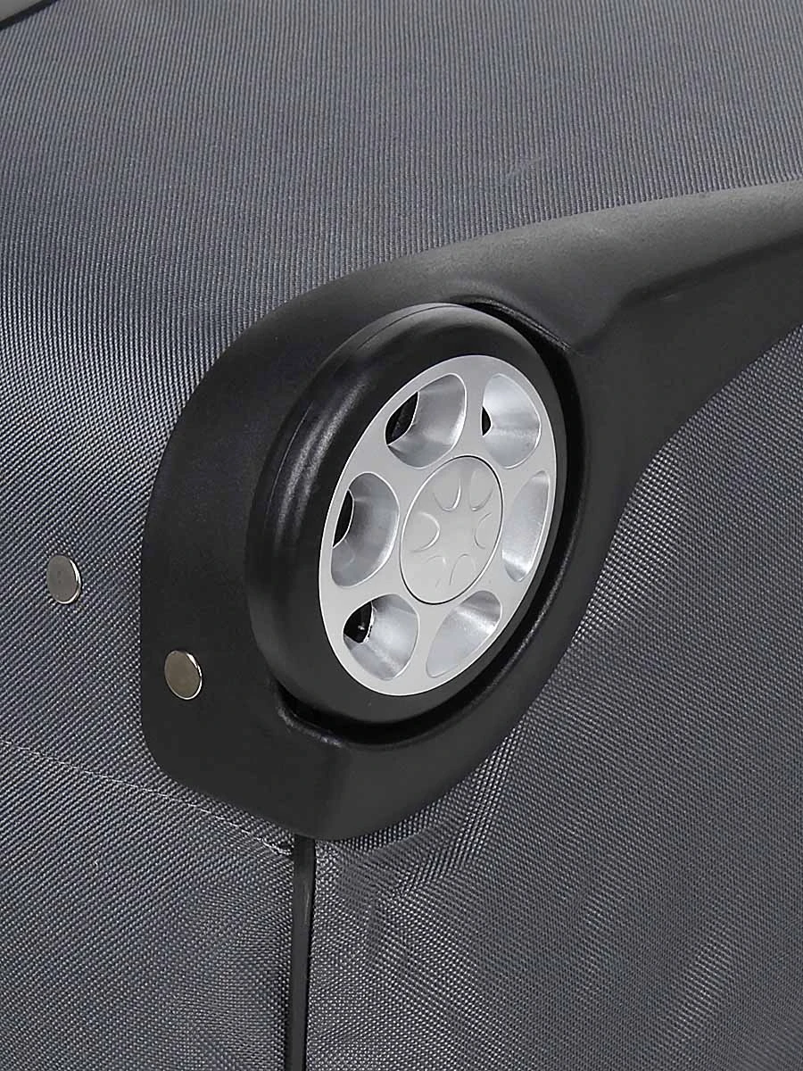 Pour une glisse agrĂ©able, le sac Kinston Confort est Ă©quipĂ© d’une poignĂ©e tĂ©lescopique double canne Ă position rĂ©glable et de 2 larges roulettes. En complĂ©ment, on trouve une poignĂ©e haute permettant de le tenir Ă la main si l’on prĂ©fère. Des renforts rigides permettent de prĂ©server son revĂŞtement d’une usure trop rapide.