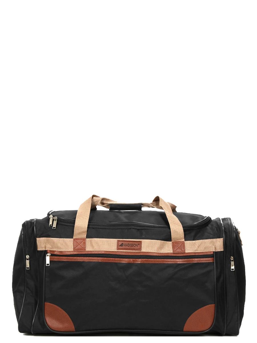 Le sac de voyage Madisson Kananga dispose d’un espace de rangement pratique. En effet, il se compose d’un grand compartiment avec un système de fermeture Ă glissière, dans lequel on peut dĂ©poser tous les effets nĂ©cessaires au sĂ©jour, tel que ses vĂŞtements, des chaussures ou une trousse de toilette. On note que l’intĂ©rieur possède un traitement impermĂ©able qui lui permet de mieux rĂ©sister Ă l’humiditĂ© ambiante. Il est muni de 3 poches extĂ©rieures, une Ă l’avant et deux sur le cĂ´tĂ©, astucieux pour laisser certains indispensables accessibles ou glisser des affaires de dernière minute sans dĂ©ranger son contenu.Â