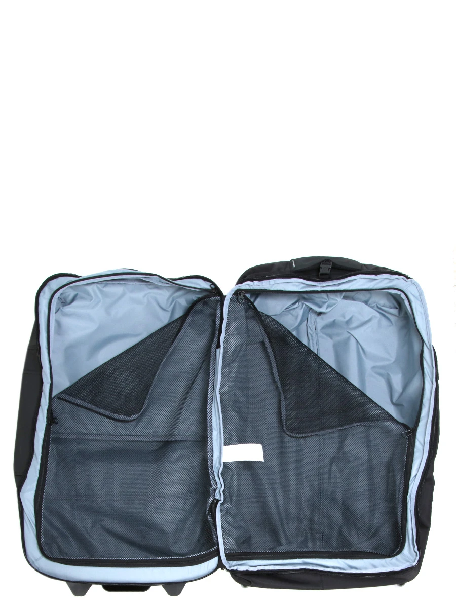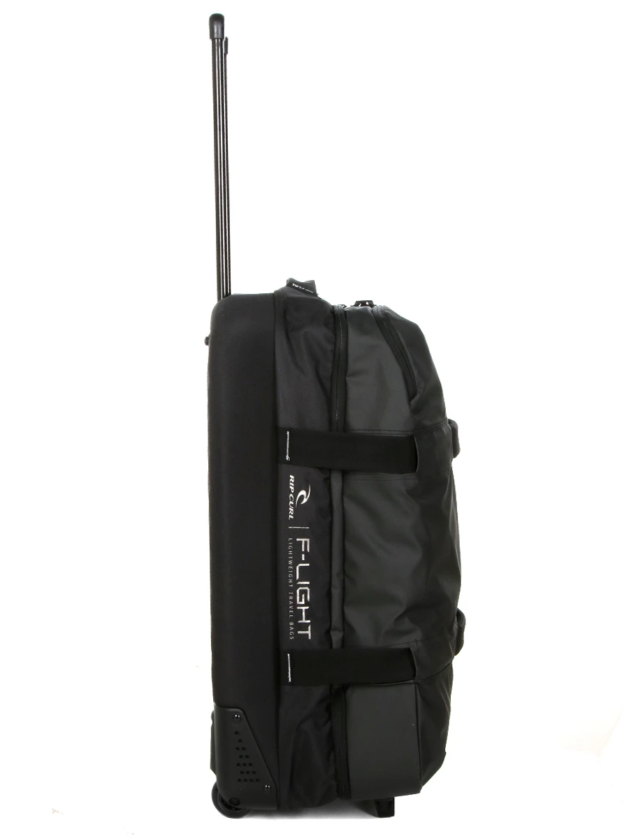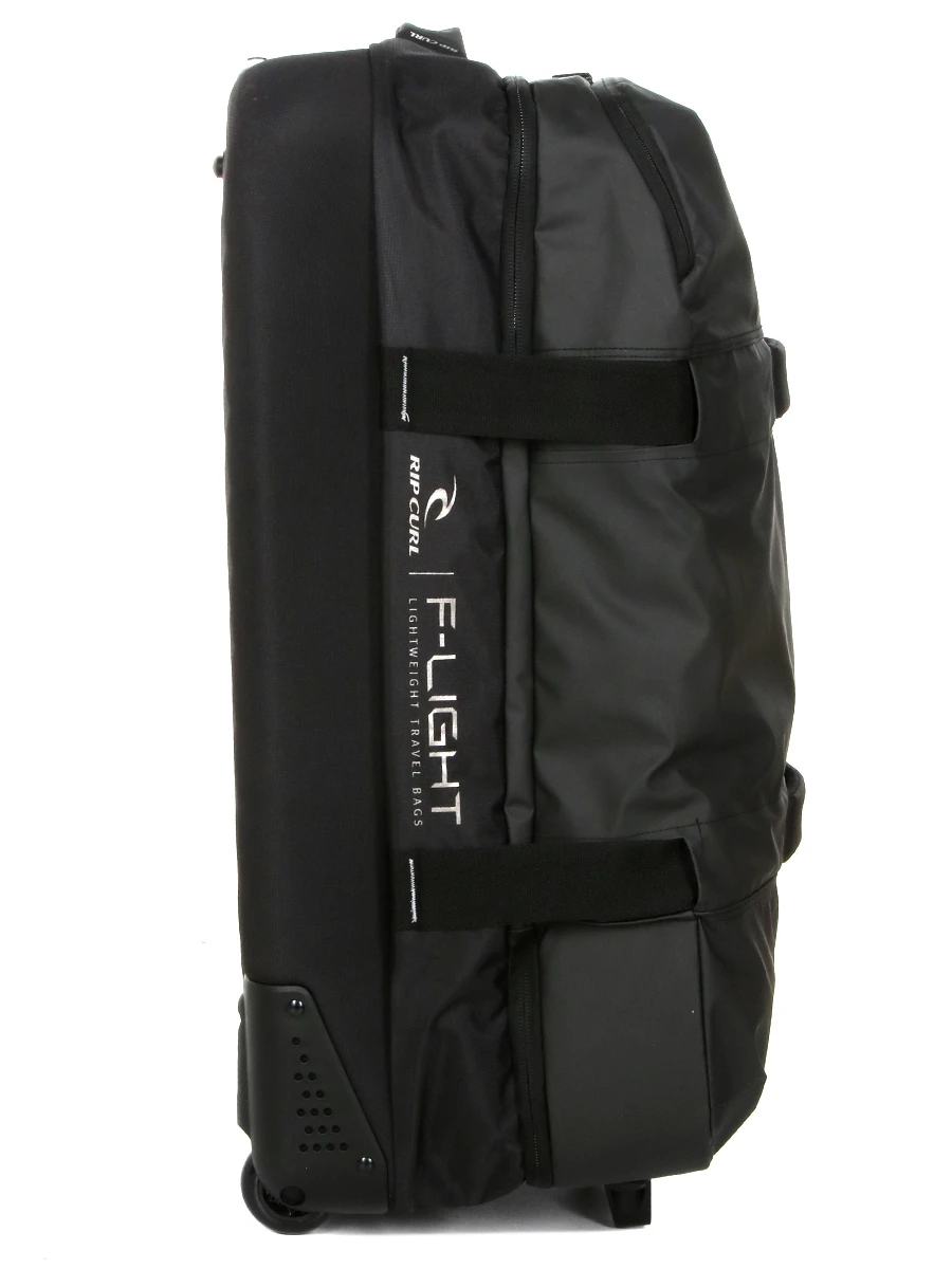 Le sac Rip Curl Midnight F-Light Global est Ă©quipĂ© de deux roues et d’un trolley double tube pour un roulage confortable. Pas moins de quatre poignĂ©es de portage stratĂ©giquement placĂ©es permettent de le manier facilement. Des patins anti Ă©raflures lui offrent une grande stabilitĂ© et Ă©vitent les salissures sur son revĂŞtement. Pour pouvoir y accrocher un sac d’appoint, il dispose d’une attache sur la partie supĂ©rieure. Les fermetures Ă glissière sont perforĂ©es afin de pouvoir les sĂ©curiser avec un cadenas (non fourni). Des sangles de compression permettent en outre d’entraver les ouvertures pour offrir un niveau de sĂ©curitĂ© supplĂ©mentaire.