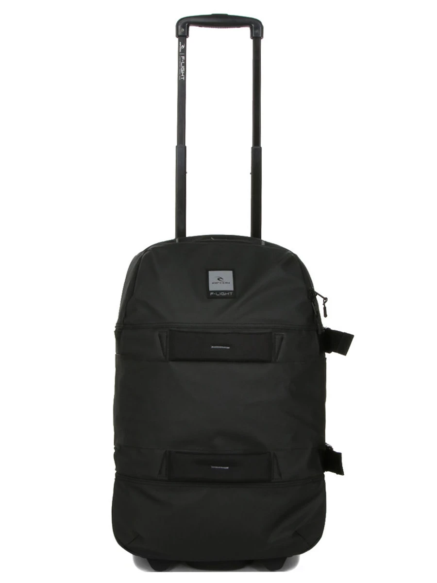 Le sac cabine Rip Curl Midnight F-Light Transit est très maniable grâce Ă ses deux roues, son trolley double tube ajustable et ses quatre poignĂ©es de portage. Il est possible d’accrocher un cadenas (non fourni) aux languettes perforĂ©es de la fermeture Ă glissière. Pour encore plus de sĂ©rĂ©nitĂ©, des sangles de compression entravent l’accès aux zips. Les patins de protection protègent sa toile des Ă©raflures.