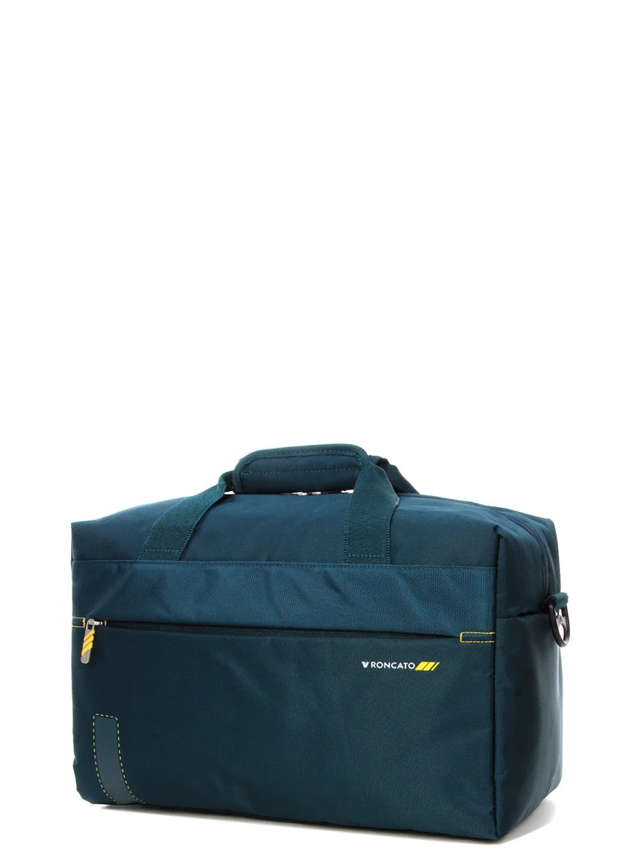 A l’arrière, le petit sac de voyage Roncato Speed est Ă©quipĂ© d’un passant pour pouvoir l’accrocher au trolley d’une valise. En outre, il est muni d’une bandoulière ajustable amovible renforcĂ©e et moussĂ©e pour Ă©viter les cisaillements. Ses deux poignĂ©es de portage aussi sont pourvues d’une patte de maintien rembourrĂ©e pour favoriser le confort en toutes circonstances. Sur le bas du sac, des patins de protection Ă©vitent salissures et Ă©raflures.Â