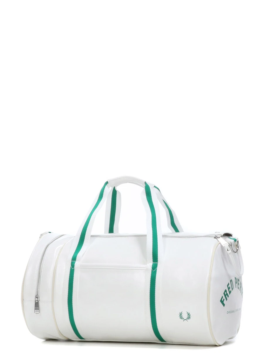 Le sac Fred Perry Classic Barrel Bag 46 cm allie charme rĂ©tro et tendance moderne avec ses lignes classiques et son revĂŞtement en simili cuir bright. La couronne de laurier emblème de la marque et allĂ©gorie de l’excellence, est gaufrĂ©e en creux sur la face avant. IdĂ©al pour servir de sac de sport grâce Ă ce symbole, il fait aussi un superbe sac d’appoint pour une escapade d’un week-end.