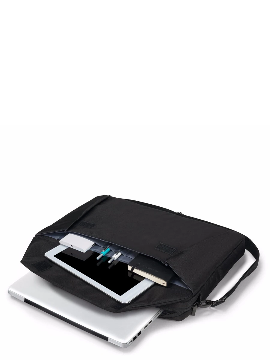 Le porte ordinateur Dicota Edge offre un compartiment renforcĂ© parfait pour un MacBook ou un Ultrabook jusqu’Ă 13.3 pouces. Effets personnels et accessoires en tout genre peuvent trouver une place de choix dans sa poche frontale Ă rabat Ă attache velcro. LĂ , tablette 10.5 pouces, petites fournitures et stylos peuvent ĂŞtre glissĂ©s dans des emplacements spĂ©cifiques. A l’arrière, une large poche zippĂ©e permet de garder sous la main le portefeuille, le tĂ©lĂ©phone, la paire d’Ă©couteurs, etc.