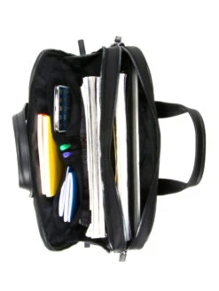 Le sac business Hexagona Citizen possède 2 compartiments munis d’une doublure textile pour former un rempart efficace contre l’humiditĂ©. L’un, Ă©quipĂ© d’une poche rembourrĂ©e, peut ĂŞtre dĂ©diĂ© au transport d’une tablette ou d’un ordinateur 13 pouces ainsi que les accessoires multimĂ©dia affĂ©rant Ă leur usage. L’autre, peut quant Ă lui ĂŞtre rĂ©servĂ© pour les mĂ©mos, les revues techniques et autres documents professionnels. LĂ , les petits accessoires et les fournitures trouvent une place de choix dans l’une de ses poches internes. A l’avant, une grande poche Ă zip permet de laisser Ă portĂ©e de main l’indispensable tĂ©lĂ©phone, un trousseau de clĂ©s, un pass pour les transports ou encore un badge d’accès.