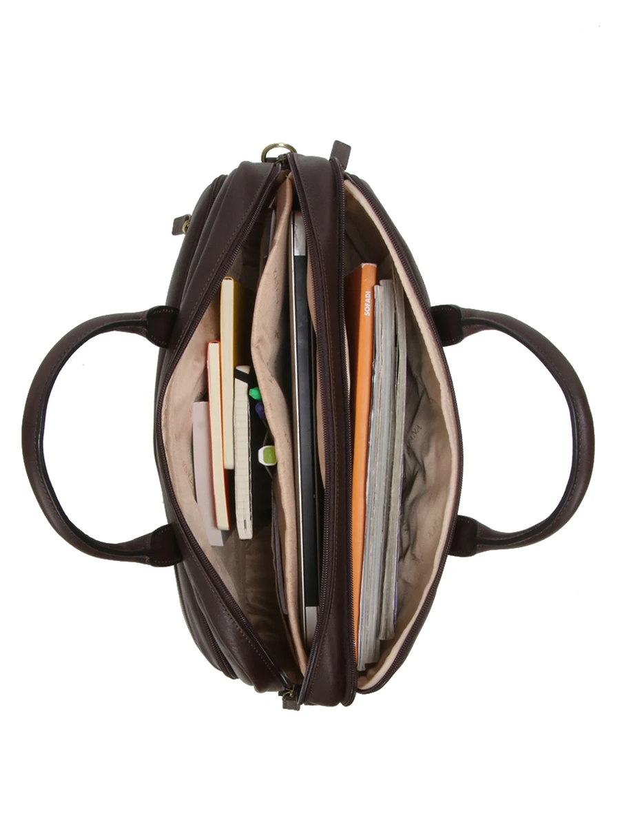 Le sac ordinateur cuir Katana Trendy permet de ranger dans son premier compartiment un ordinateur 14 pouces grâce Ă une poche rembourrĂ©e. Ses 2 poches PDA peuvent contenir 2 tĂ©lĂ©phones ou carnets de note ainsi que des stylos dans des emplacements dĂ©diĂ©s. Dans le second compartiment, on dĂ©pose avec aisance des documents A4 brochĂ©s ou volants. Une poche zippĂ©e permet de garder Ă part les documents plus importants Ă ne pas Ă©garer. A l’extĂ©rieur, 3 poches zippĂ©es permettent de disposer ses effets personnels : portefeuille, badge professionnel, titre de transport, trousseau de clĂ©s, paires de lunettes… Un passant arrière se dissimule dans l’une d’elles pour le placer si besoin sur un bagage Ă roulettes, pour des trajets fluides.