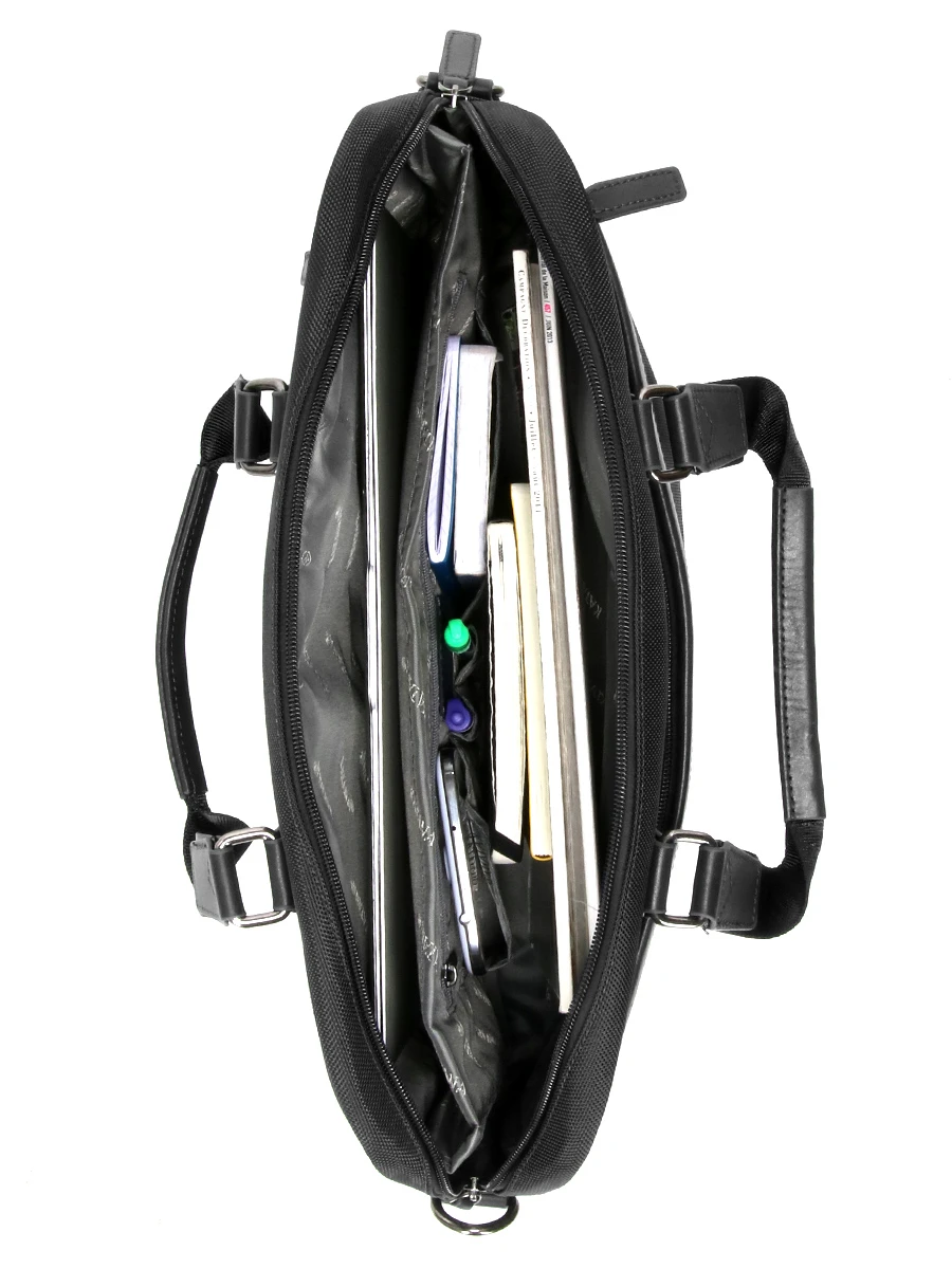 La sacoche business Katana Urban Chic possède un compartiment unique entièrement doublĂ© pour ranger ses affaires de façon efficace et Ă l’abri de l’humiditĂ©. Elle comporte 4 poches intĂ©rieures dont une poche matelassĂ©e pour accueillir un ordinateur 15 pouces. Il y sera Ă l’abri des chocs. La poche zippĂ©e permet de ranger un câble de chargement, une batterie externe ou une souris sans fil, par exemple. Ses 2 petites poches peuvent contenir un petit calepin et un tĂ©lĂ©phone. Les stylos sont maintenus dans leurs emplacements spĂ©cifiques pour Ă©viter de les chercher dans le fond du sac. Quelques feuilles volantes peuvent trouver leur place dans le compartiment. Les poches extĂ©rieures permettent de ranger ses effets personnels comme l’Ă©tui Ă lunettes, le paquet de mouchoir ou le titre de transport. Enfin, la poche arrière permet de ranger ses papiers d’identitĂ© nĂ©cessaires aux voyages.Â