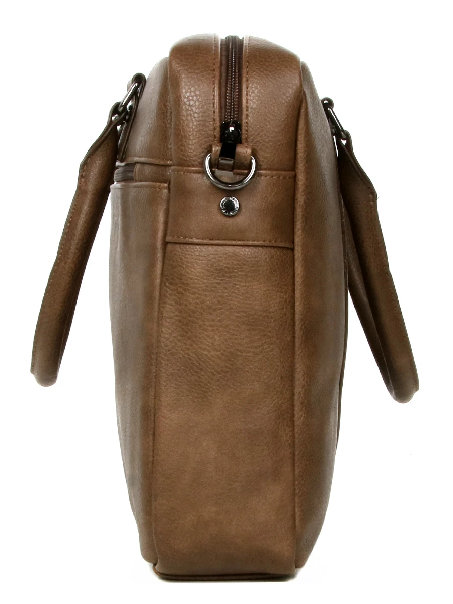 La sacoche business Kinston Vintage Gabriel se porte de façon agrĂ©able Ă la main ou Ă l’Ă©paule. A cette fin, elle est munie d’une bandoulière rĂ©glable Ă taille et dĂ©tachable ainsi que de 2 larges anses garnies en simili cuir. Elle est fournie avec une housse en textile fin pour l’entreposer Ă l’abri de la poussière entre 2 utilisations.