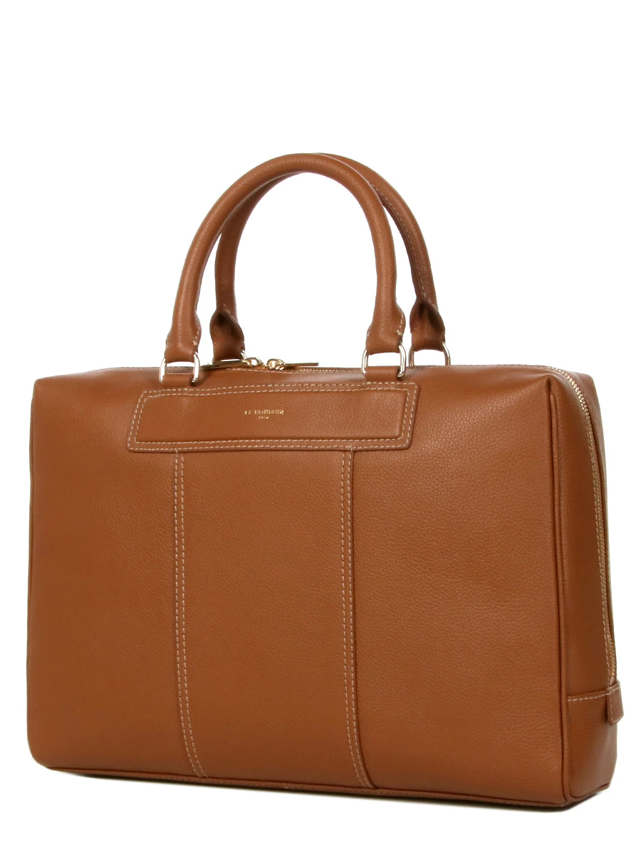 La sacoche business Le Tanneur Judith dispose d’un compartiment doublĂ© Ă fermeture Ă glissière pouvant accueillir des pochettes pour feuilles A4, des carnets de note, des revues techniques ou encore un ordinateur 14 pouces ou une tablette – dans une poche matelassĂ©e spĂ©cifique. Pour les accessoires, une poche ouverte et une poche zippĂ©e sont prĂ©sentes. A l’avant, une petite poche plaquĂ©e permet de laisser sous la main le pass pour les transports, par exemple.