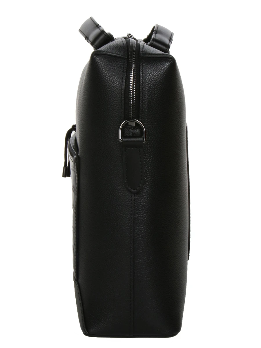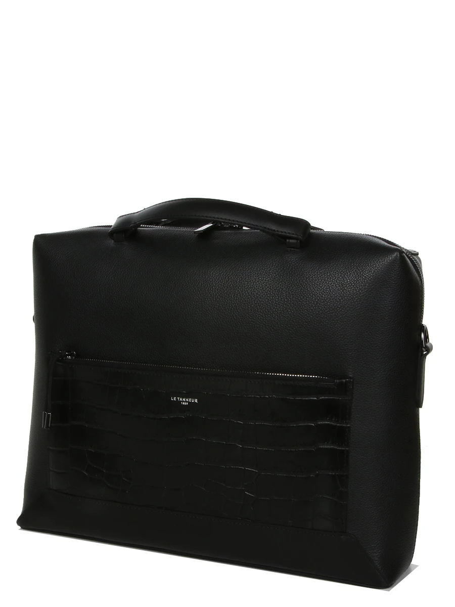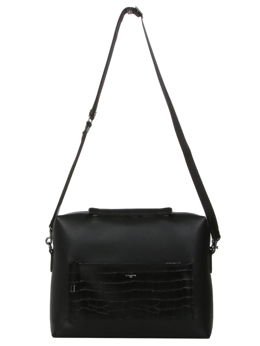 La sacoche business Le Tanneur Nathan possède un grand compartiment dotĂ© d’une poche matelassĂ©e avec patte de maintien pour ordinateur 14 pouces, une poche zippĂ©e et deux poches plates pour organiser les accessoires. Il peut Ă©galement accueillir de nombreux dossiers au format A4. La poche frontale embossĂ©e façon croco est quant Ă elle idĂ©ale pour un livre ou un en-cas par exemple.