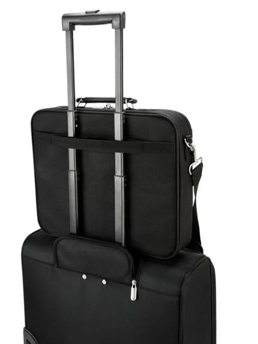 La sacoche business Targus dispose d’un dĂ©tail discret mais très pratique : un passant pour trolley. Celui-ci permet d’accrocher la sacoche Ă une valise, lors de voyages professionnels, par exemple. Pour les trajets du quotidien, elle peut se porter tout simplement Ă la main, avec sa poignĂ©e de portage garnie en simili cuir, ou encore Ă l’Ă©paule, en y ajustant sa bandoulière renforcĂ©e.