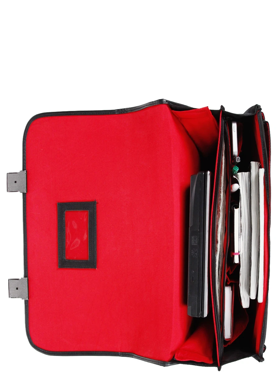 Ce cartable Davidt’s Monte Carlo se ferme Ă l’aide de 2 attaches mĂ©talliques, sĂ©curisĂ©e par des serrures Ă clĂ©s. A l’intĂ©rieur, il offre deux espaces de rangement doublĂ©s sĂ©parĂ©s par un plateau avec une grande poche zippĂ©e, ainsi qu’un porte Ă©tiquette sur le rabat. Le premier soufflet alloue le rangement d’un ordinateur portable de taille 17 pouces (ou infĂ©rieure). Le second soufflet offre, quant Ă lui, 2 poches plates, des porte stylos et une poche pour le tĂ©lĂ©phone.
