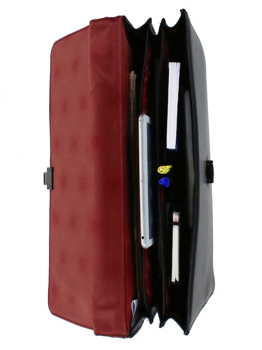 La serviette Davidt’s Oran 41.5 cm est infiniment pratique avec son triple compartiment spacieux et entièrement doublĂ©. La partie centrale contient une poche renforcĂ©e pour tablette numĂ©rique et la partie avant renferme des petits espaces astucieux comme des poches PDA et des passants pour stylos.