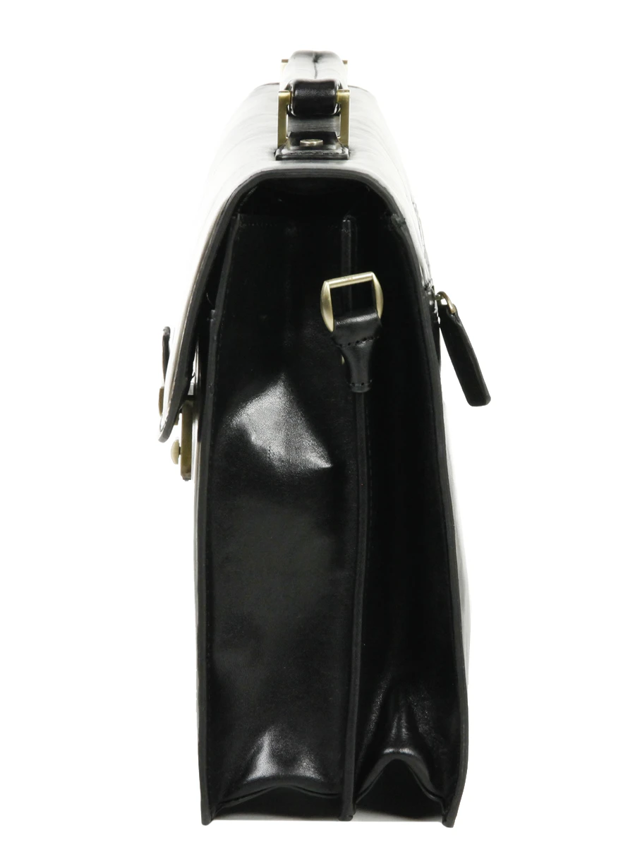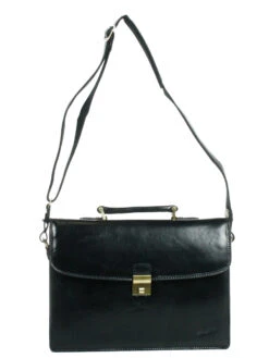 Ce cartable Gérard Hénon Executive 38 cm se ferme à l’aide d’un rabat en cuir, muni d’une attache frontale et d’une serrure à code. A l’extérieur, il est également doté d’une poche arrière zippée ainsi que d’une poche frontale, elle-même munie d’emplacements pour cartes de visite / CB. Ce porte-documents se déplace confortablement à la main, grâce à sa poignée de portage en cuir. Il est également possible de le transporter sur l’épaule, à l’aide de sa bandoulière ajustable, amovible et renforcée en cuir.
