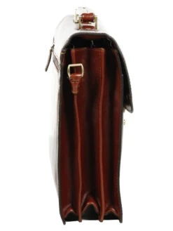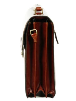Ce cartable en cuir Gérard Hénon Executive se ferme à l’aide d’un rabat, d’un fermoir métallique et d’une serrure à code (2 chiffres). A l’intérieur, elle est pourvue de 3 soufflets de rangement : le premier est muni d’une grande poche zippée, le second est vide et le troisième est doté de porte stylos, d’un porte clés en cuir et de 2 poches pour Smartphones. Ils permettent tous les rangement de documents et de dossiers de travail.