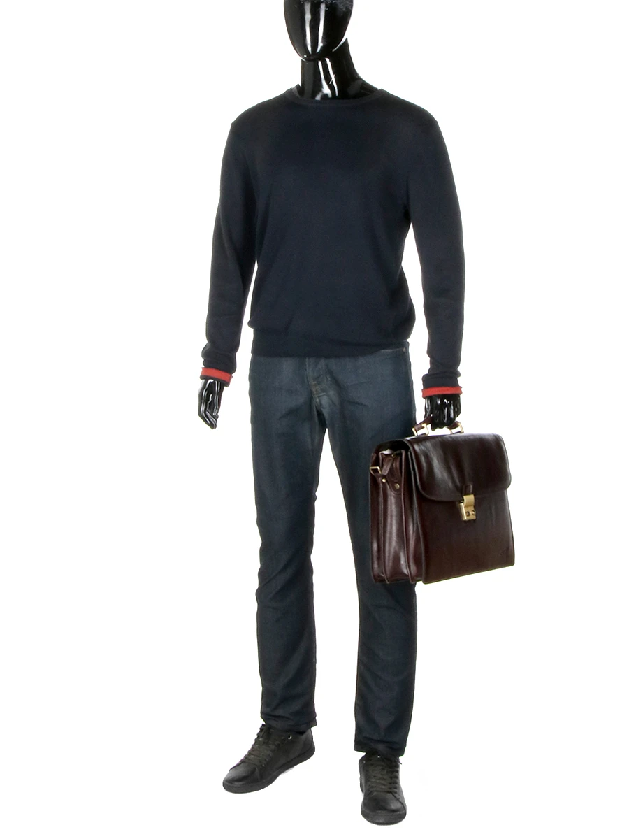 En effet, dans la poche extérieure arrière de la serviette ordinateur Gérard Hénon Executive, se trouve un passant pour trolley qui se dissimule lorsqu’il n’est pas utile. Sa poignée douce et solide en cuir et sa bandoulière ajustable renforcée en cuir aide l’utilisateur a la transporter avec confort et praticité. Un verrou à code discret est intégré avec finesse pour ne pas dénaturer le style global. Une housse de rangement fournie sert à entreposer la serviette à l’abri de la poussière et de l’humidité.