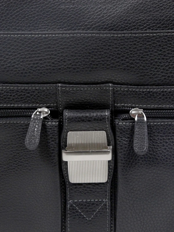 La serviette Gérard Henon Golf 38 cm est équipée d’une poignée de portage renforcée en cuir et se ferme à l’aide d’une fermeture à attache sécurisée par une serrure à clé.