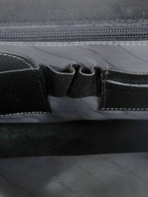 A l’intérieur, la serviette ordinateur Gérard Henon Golf dispose d’un espace de rangement équipé d’une poche zippée et d’une poche pour ordinateur 13 pouces. Côté extérieur, on trouve sous le rabat une poche plate et deux poches zippées, ainsi qu’une grande poche zippée au dos.