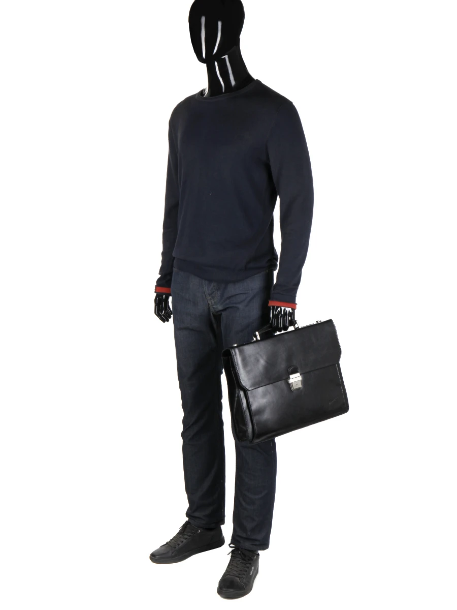 La serviette Gérard Hénon New Master 38 cm est une démonstration de qualité et de savoir-faire. Conçue en cuir de vachette collet, elle apporte sobriété et élégance en toutes circonstances. Munie d’une poignée en cuir renforcée, elle s’emporte avec aisance et peut être portée de différentes façons.