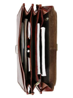 Le sac business République offre un espace de rangement bien pensé avec ses 3 compartiments, ses 2 grandes poches (dont l’une à zip) et ses 2 poches plates. En complément, pour les petites fournitures, il est doté de poches pour cartes de visite, de passant pour stylos et d’un porte-clé. A l’extérieur, sa poche sous rabat et sa poche arrière à zip permettent de laisser accessible certains effets personnels comme le porte-feuille par exemple.