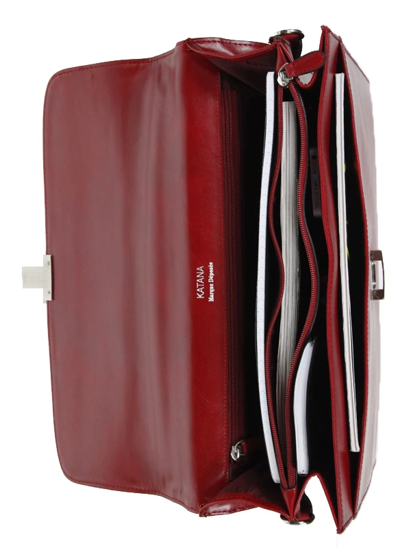 La serviette Katana Hype 38 cm – 2 soufflets allie soliditĂ©, sobriĂ©tĂ© et confort grâce Ă sa conception en refente de cuir de vachette. Elle permet de transporter avec Ă©lĂ©gance et organisation toutes ses affaires professionnelles (dossiers, documents, accessoires…). Ce cartable est un sac business de haute qualitĂ©, il garantit des dĂ©placements empreints d’excellence et de raffinement.