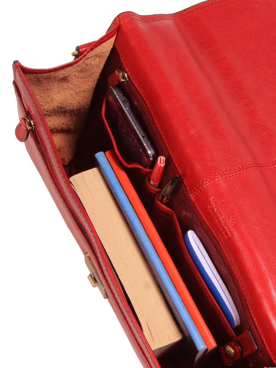 CĂ´tĂ© portage, le cartable Katana Specialist mise sur le confort d’une poignĂ©e haute garnie en cuir et d’une bandoulière en cuir rĂ©glable Ă taille. Il se ferme grâce Ă son rabat Ă attache mĂ©tallique. Sa serrure Ă code est personnalisable simplement en maintenant en position basse son loquet de dĂ©verrouillage pendant tout le temps du choix de la combinaison. Une fois le nouveau code sĂ©lectionner, il suffit de relâcher son loquet et le tour est jouĂ©.