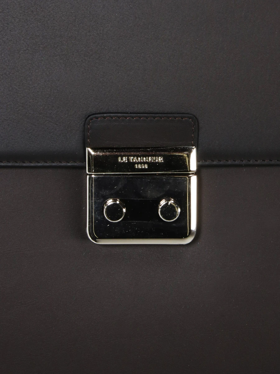 La sacoche business Le Tanneur Albert dispose d’un grand compartiment pouvant accueillir dossiers et classeurs. Une petite poche plate sur la paroi permet de glisser des cartes pour un accès facile. Sur la paroi opposĂ©e, une poche zippĂ©e est idĂ©ale pour le porte feuille ou autres objets de valeurs. Une grande poche frontale plate peut loger des documents au format A4 et une poche fermĂ©e par un bouton pression aimantĂ© Ă l’arrière est idĂ©ale pour y ranger livres et carnets.