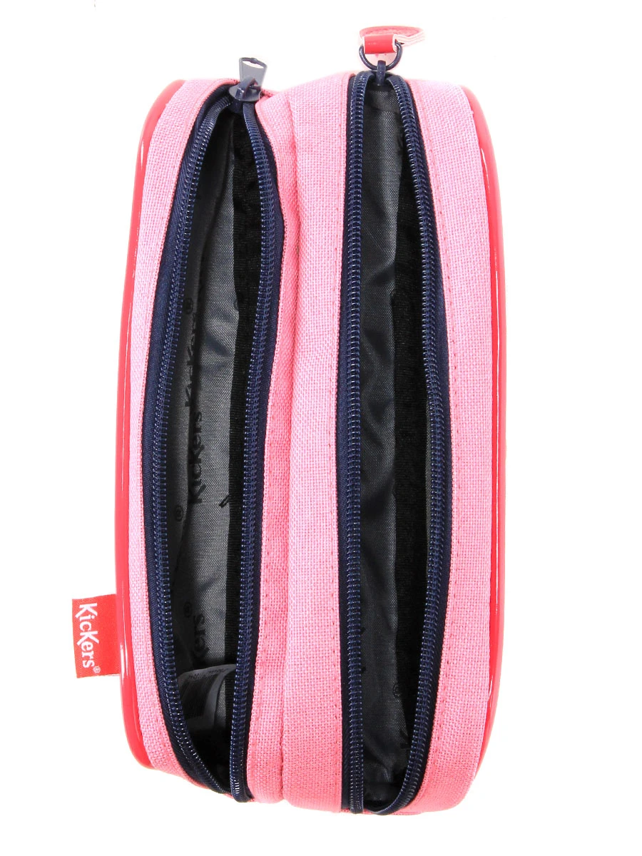 La trousse Kickers Girl Unique offre 2 compartiments Ă fermeture Ă glissière. Leur revĂŞtement dispose d’une finition interne dĂ©perlante et ils sont en plus partiellement doublĂ©s pour limiter les dĂ©gâts si un stylo vient Ă fuir. Il est simple d’y dĂ©poser Ă part l’un de l’autre le matĂ©riel d’art plastique (crayons de couleur, paire de ciseaux, etc.) et les fournitures nĂ©cessaires pour une Ă©criture soignĂ©e (crayon de papier, stylo plume, effaceur, gomme…).