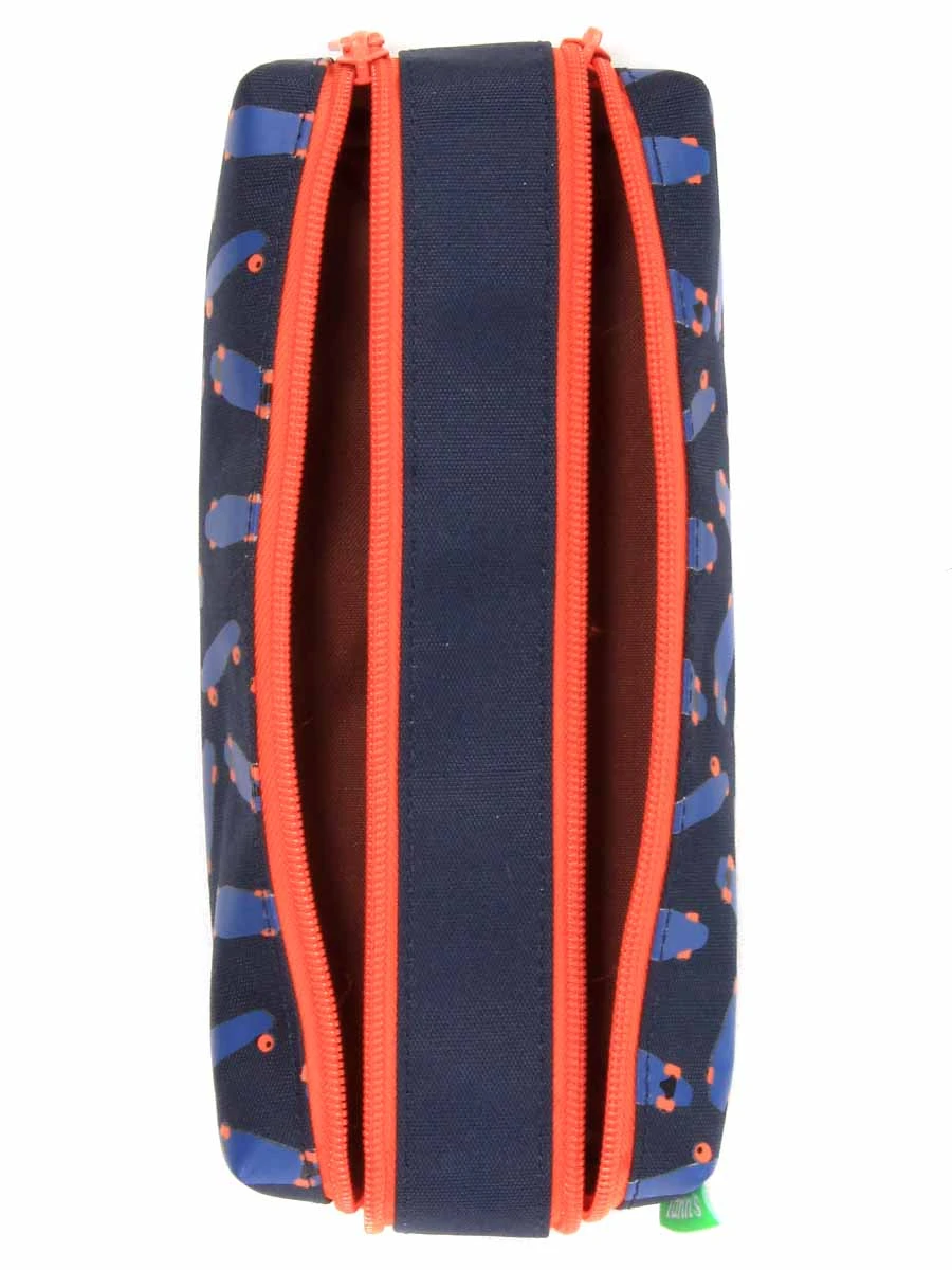 La trousse Tann’s Pablo – 2 compartiments fait le bonheur des petits riders et de leurs parents grâce Ă son revĂŞtement Ă©co-responsable en polyester recyclĂ© ornĂ© d’un imprimĂ© sur le thème du skate. Pour une utilisation ergonomique, elle s’ouvre et se ferme Ă l’aide de zips.