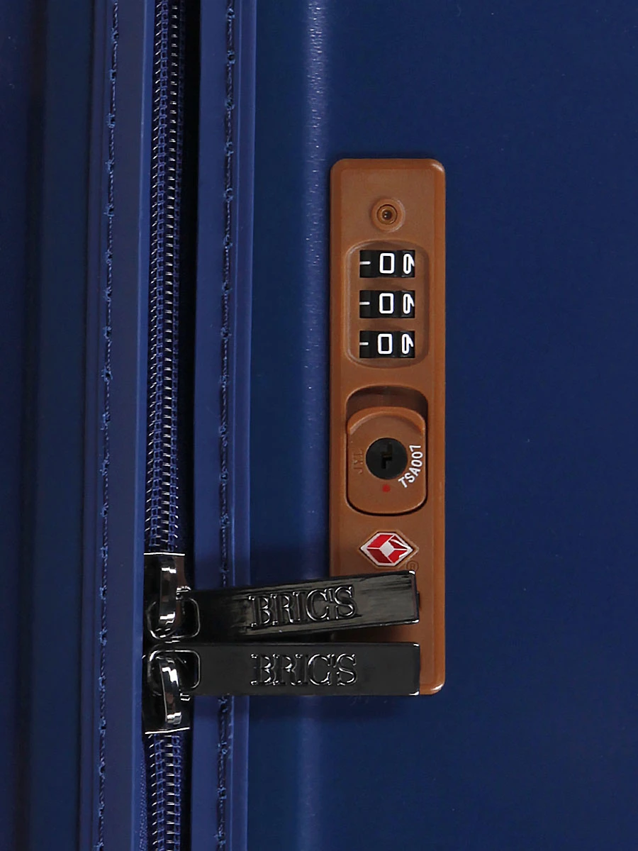 Pour un roulage commode, la valise Bric’s Ravenna est montĂ©e sur 4 doubles roues multidirectionnelles et Ă©quipĂ©e d’un trolley Ă double canne. Ses 2 poignĂ©es de portage offrent une bonne prise en main lorsqu’il vient Ă ĂŞtre nĂ©cessaire de franchir un obstacle ou simplement de la dĂ©poser sur un porte bagages. La sĂ©curitĂ© n’est pas oubliĂ©e grâce Ă sa serrure TSA Ă code ergonomiquement encastrĂ©e sur le haut de sa coque. Il est ainsi vraiment facile de la verrouiller.Â