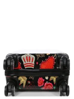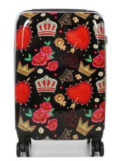 La valise Madisson Roses for the Queen 55 cm affiche un look à la fois rock et glamour avec sa coque brillante dĂ©corĂ©e de motifs de roses, de cĹ“urs et de couronnes aux couleurs vives sur fond noir. Un design stylĂ© qui offre aussi l’avantage d’ĂŞtre très distinctif et permet par exemple de repĂ©rer votre bagage d’emblĂ©e au moment de le rĂ©cupĂ©rer sur le carrousel Ă bagages Ă l’aĂ©roport. ConfectionnĂ©e en ABS et polycarbonate, la valise est d’une lĂ©gèretĂ© apprĂ©ciable. Son système de tractage fluide facilite les dĂ©placements et son amĂ©nagement simple mais pratique est parfait pour les escapades de quelques jours. Ses dimensions lui permettent de voyager en cabine avec toutes les compagnies aĂ©riennes (Air France, Ryanair, EasyJet). Une multitude de qualitĂ©s pour un prix très abordable.