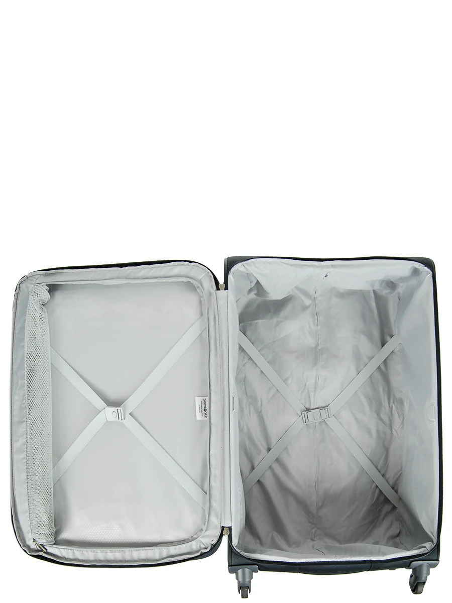 La valise extensible Samsonite Base Boost bĂ©nĂ©ficie d’une grande capacitĂ© de contenance de 105 L. Grâce Ă son soufflet d’extension, elle peut gagner encore 7 L de volume en plus (pour atteindre 112.5 L !). De plus, son organisation intĂ©rieure permet un rangement ordonnĂ© des vĂŞtements. Elle est, en effet, munie d’une pochette zippĂ©e pour les ceintures, bijoux et autres accessoires, de sangles Ă©lastiques croisĂ©es pour garder les habits bien pliĂ©s, d’une cloison de sĂ©paration zippĂ©e pour Ă©viter que le contenu de son compartiment plat se dĂ©verse une fois la valise ouverte et d’une doublure protectrice.