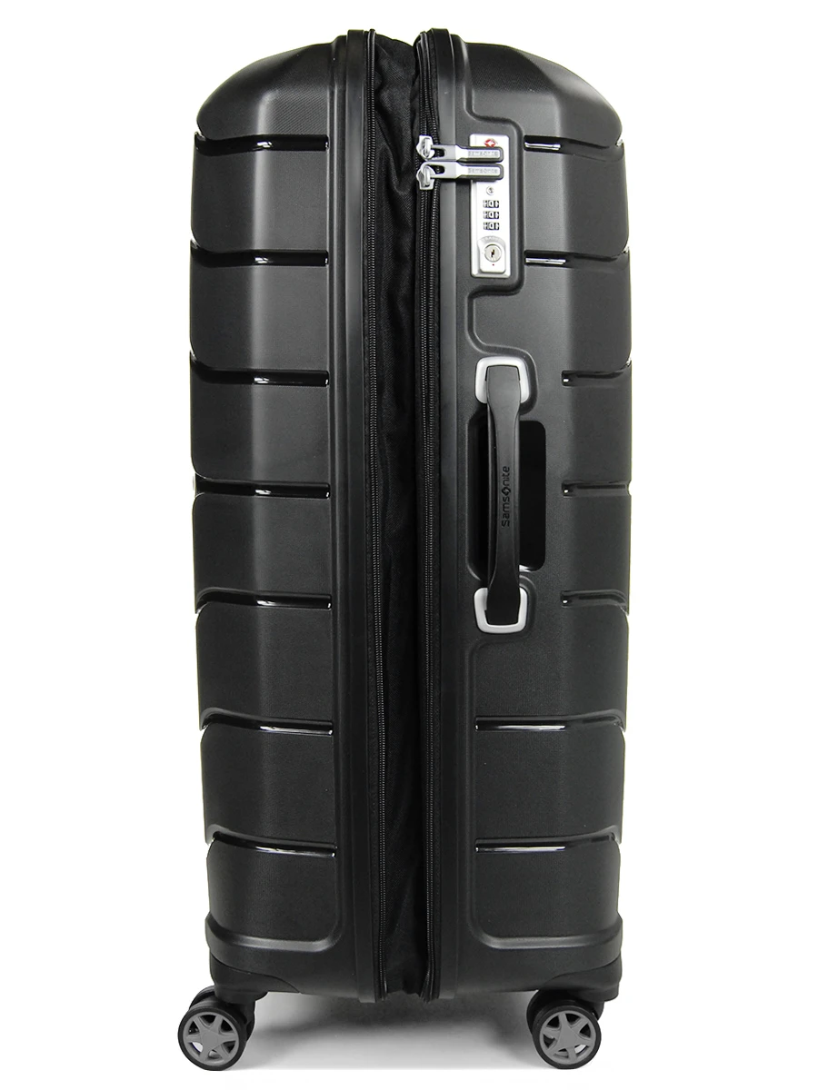 La valise Samsonite Flux permet de voyager l’esprit tranquille avec son système de serrure Ă code TSA intĂ©grĂ© (pour les USA) et ses 2 fermetures zippĂ©es. En cas de perte ou d’oubli, son propriĂ©taire sera facilement identifiable grâce Ă son porte Ă©tiquette imbriquĂ© au dos.