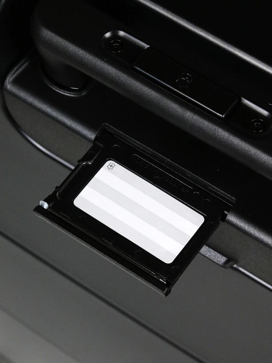 Avec la valise cabine ​Victorinox Lexicon Slim, vous pourrez recharger votre tĂ©lĂ©phone au cours du voyage sans encombre. En effet sa coque est Ă©quipĂ©e d’un port USB, reliĂ© Ă un câble usb rangĂ© dans une poche intĂ©rieure et auquel on peut brancher une batterie portable. Elle est aussi munie d’une puce « ID Tracking » permettant de la localiser en cas de perte et d’un porte-adresse imbriquĂ© sous le trolley, cachant un mini stylo et un outil de rĂ©initialisation pour appareil Ă©lectronique.